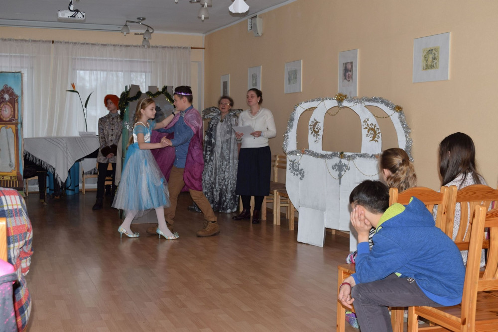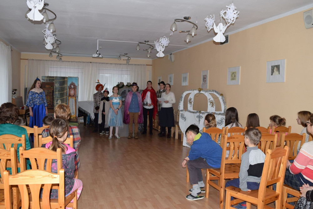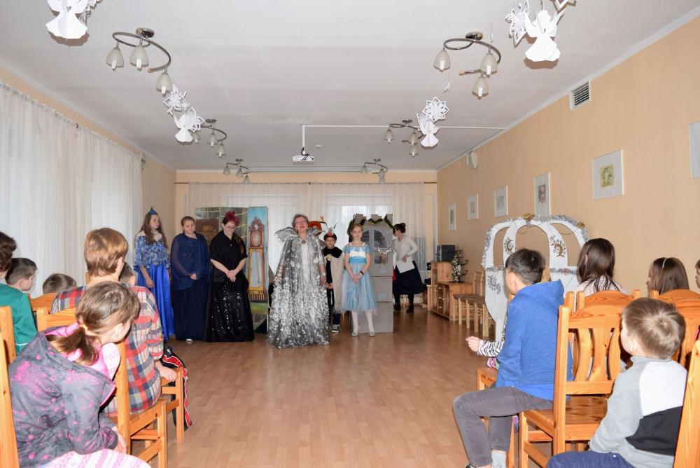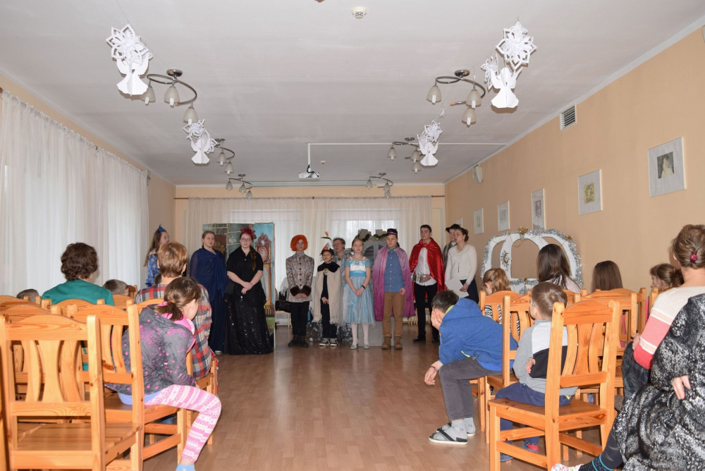 Ребята пришли поздравить воспитанников дома-интерната с Рождеством Христовым и показали костюмированную сценку «Золушка».